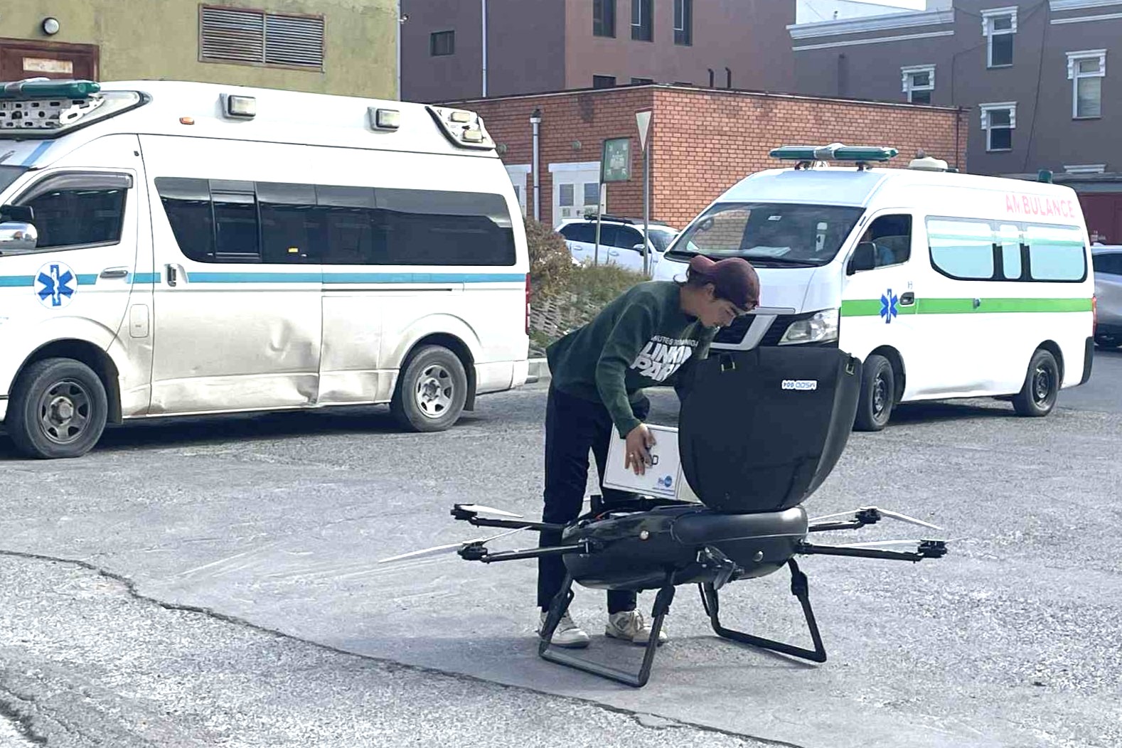 近年、当社が特に力を入れているのが、ドローンを活用した次世代物流の導入です。医薬品配送は「正確性」「温度管理」といった高度な専門性での「安全安定的供給」が求められます。ドローンはこれらの要求に応える新しい配送手段として大きな可能性を持っています。グリーンサービスでは、既存の陸上配送に加え、“空のルート”を活用することで、地域における災害時の医薬品安定供給、地域医療機関への迅速な医薬品配送、効率化によるリードタイム短縮といった新たな価値を提供できる体制づくりを進めております。