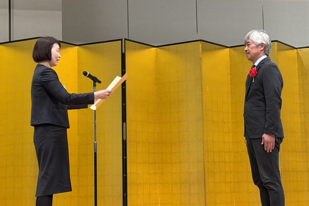 国土交通省 大臣官房 総括審議官 岡野まさ子氏より表彰状を授与されるNEXT DELIVERY代表取締役 田路圭輔
