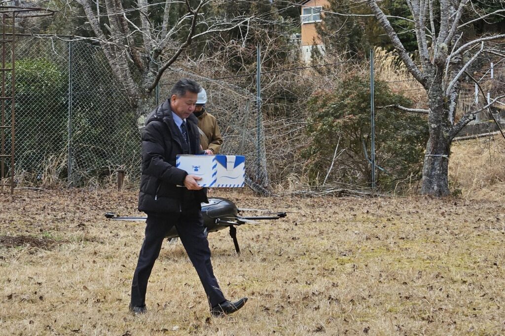 3. 今回の実証実験でドローン配送された荷物を受け取った吉井善嗣野迫川村長のコメント